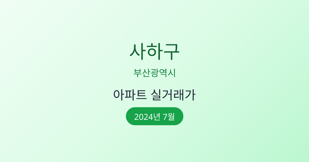 2024년 7월 부산광역시 사하구 아파트 매매 실거래가 정보입니다. 국토교통부 공식 데이터를 기반으로 합니다.