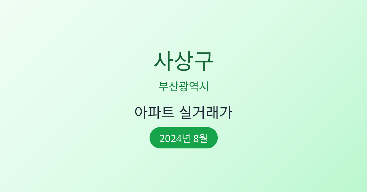2024년 8월 사상구 부동산 시장 정보 |사상구 아파트 실거래 | 사상구 매매가 조회 |부산광역시 사상구 아파트 시세 | 사상구 부동산 정보