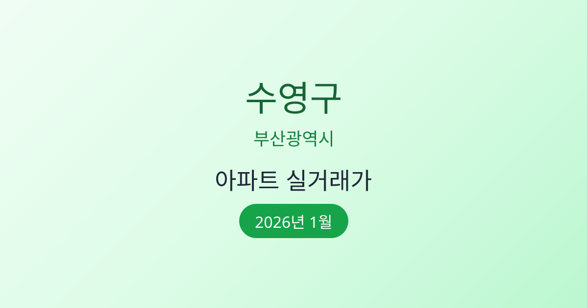 2026년 1월 부산광역시 수영구 아파트 매매 실거래가 정보입니다. 국토교통부 공식 데이터를 기반으로 합니다.