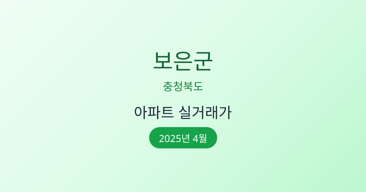 2025년 4월 보은군 부동산 시장 정보 |보은군 아파트 실거래 | 보은군 매매가 조회 |충청북도 보은군 아파트 시세 | 보은군 부동산 정보