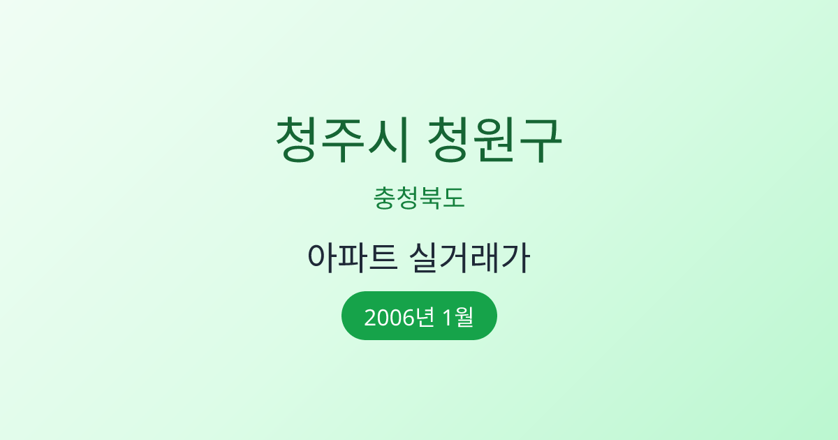 2006년 1월 충청북도 청주시 청원구 아파트 매매 실거래가 정보입니다. 국토교통부 공식 데이터를 기반으로 합니다.