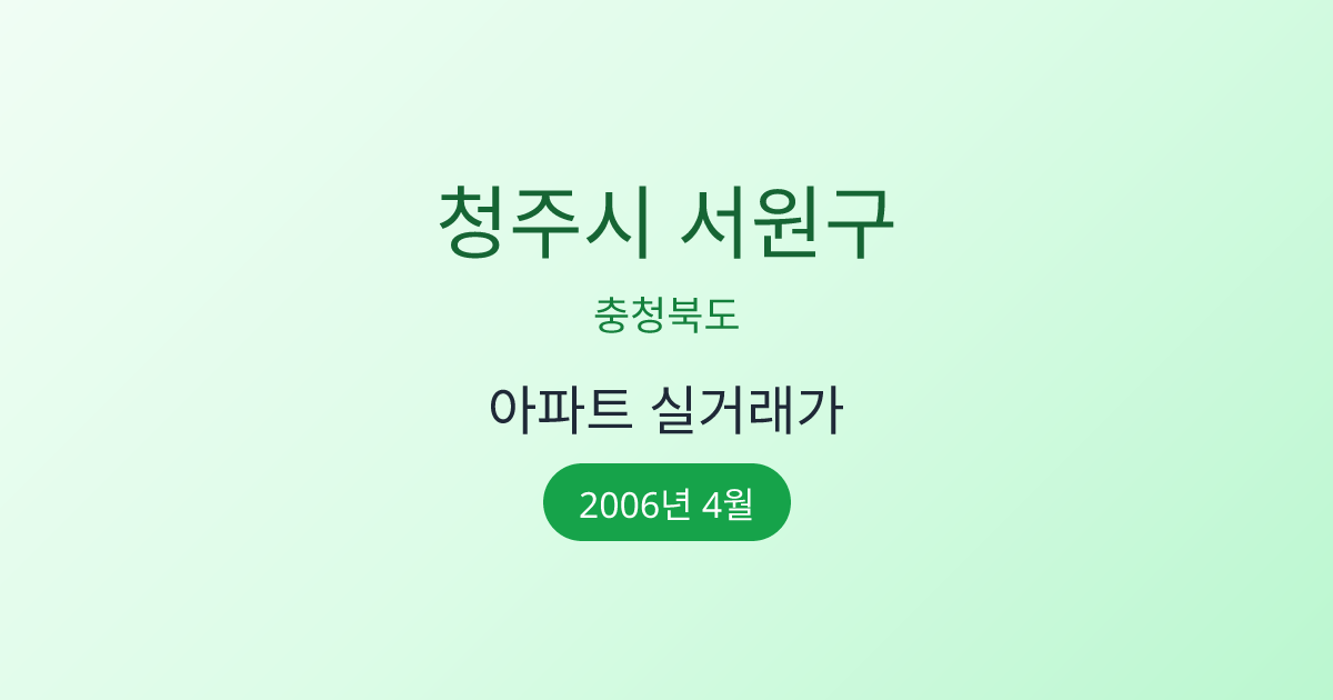 2006년 4월 충청북도 청주시 서원구 아파트 매매 실거래가 정보입니다. 국토교통부 공식 데이터를 기반으로 합니다.