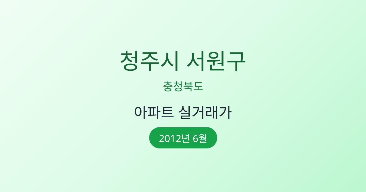 2012년 6월 충청북도 청주시 서원구 아파트 매매 실거래가 정보입니다. 국토교통부 공식 데이터를 기반으로 합니다.