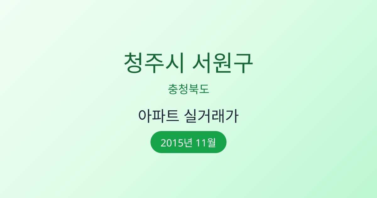 2015년 11월 충청북도 청주시 서원구 아파트 매매 실거래가 정보입니다. 국토교통부 공식 데이터를 기반으로 합니다.