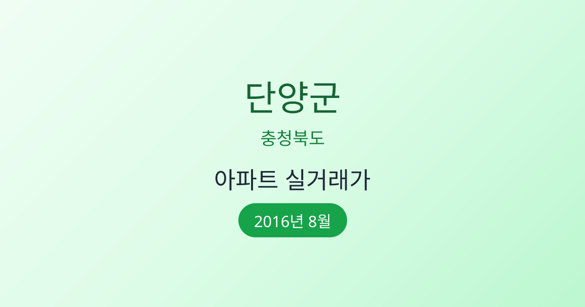 2016년 8월 단양군 부동산 시장 정보 |단양군 아파트 실거래 | 단양군 매매가 조회 |충청북도 단양군 아파트 시세 | 단양군 부동산 정보