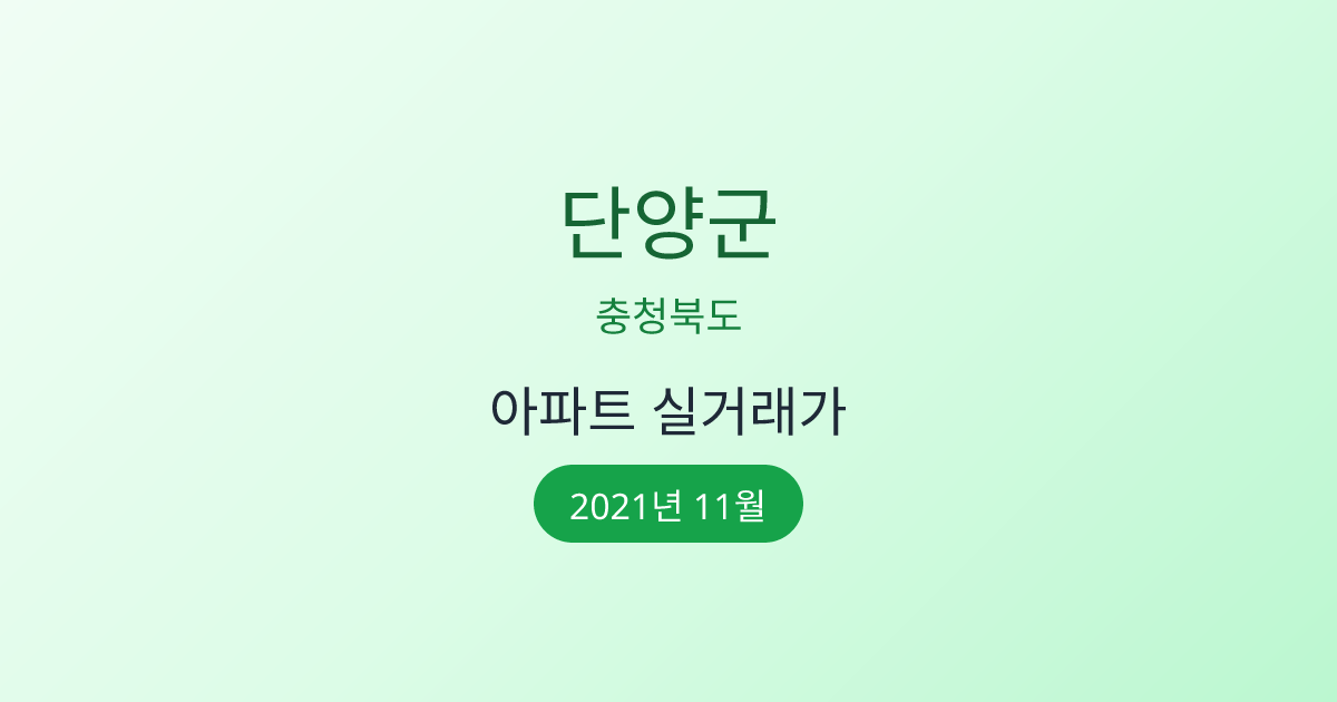 2021년 11월 충청북도 단양군 아파트 매매 실거래가 정보입니다. 국토교통부 공식 데이터를 기반으로 합니다.