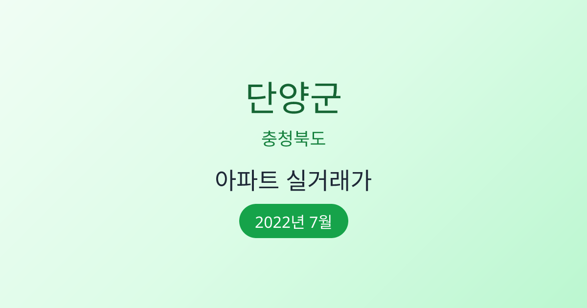 2022년 7월 충청북도 단양군 아파트 매매 실거래가 정보입니다. 국토교통부 공식 데이터를 기반으로 합니다.