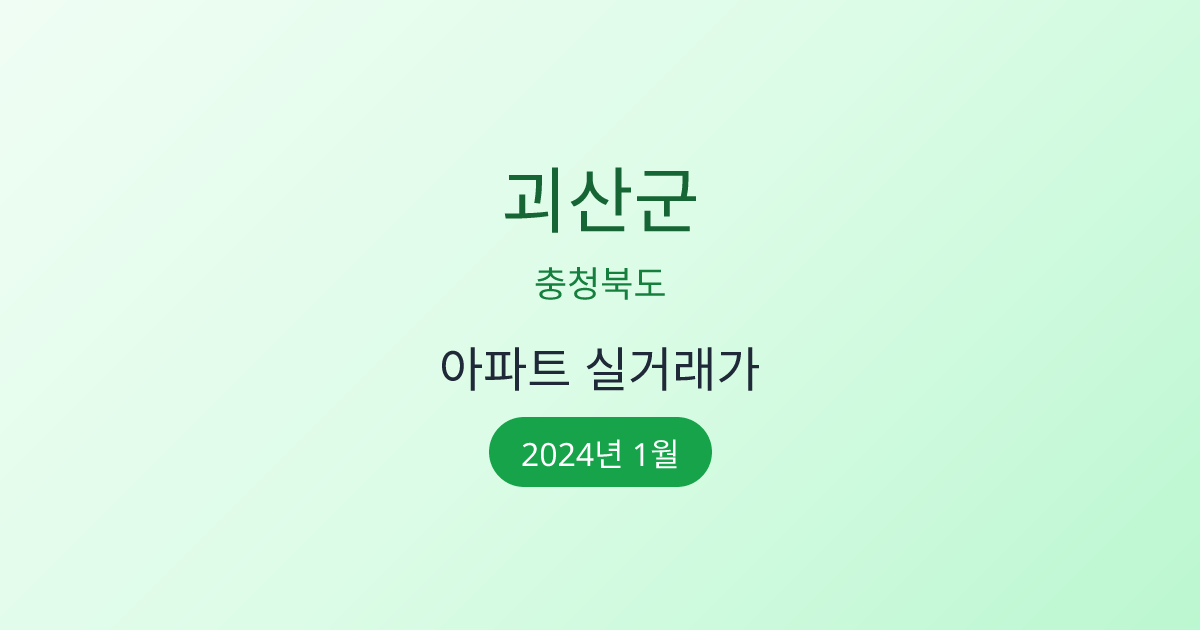 2024년 1월 충청북도 괴산군 아파트 매매 실거래가 정보입니다. 국토교통부 공식 데이터를 기반으로 합니다.