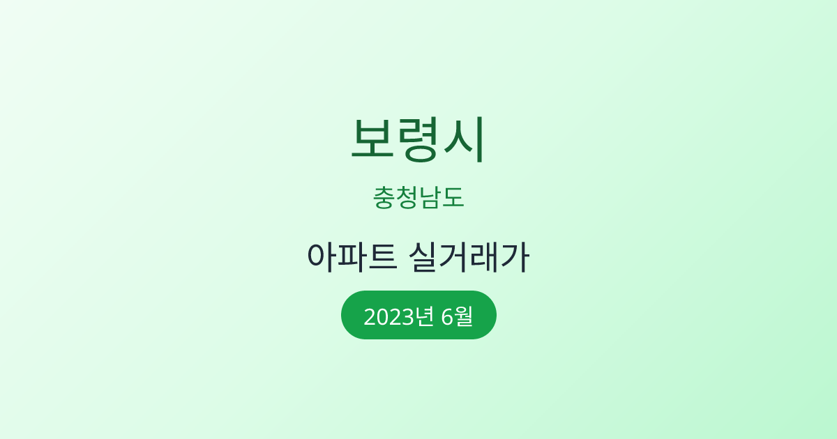 2023년 6월 충청남도 보령시 아파트 매매 실거래가 정보입니다. 국토교통부 공식 데이터를 기반으로 합니다.