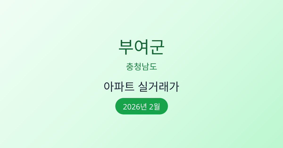 2026년 2월 부여군 부동산 시장 정보 |부여군 아파트 실거래 | 부여군 매매가 조회 |충청남도 부여군 아파트 시세 | 부여군 부동산 정보