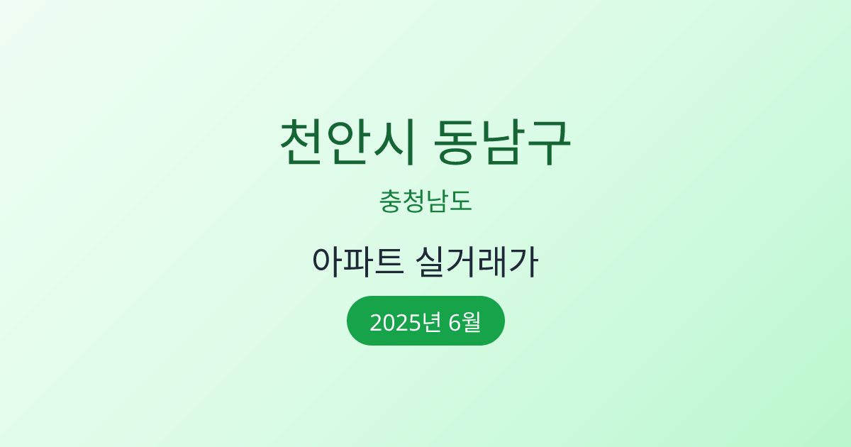 2025년 6월 천안시 동남구 부동산 시장 정보 |천안시 동남구 아파트 실거래 | 천안시 동남구 매매가 조회 |충청남도 천안시 동남구 아파트 시세 | 천안시 동남구 부동산 정보