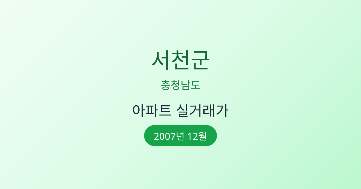 2007년 12월 충청남도 서천군 아파트 매매 실거래가 정보입니다. 국토교통부 공식 데이터를 기반으로 합니다.