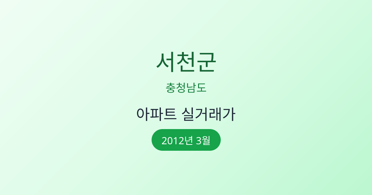 2012년 3월 충청남도 서천군 아파트 매매 실거래가 정보입니다. 국토교통부 공식 데이터를 기반으로 합니다.