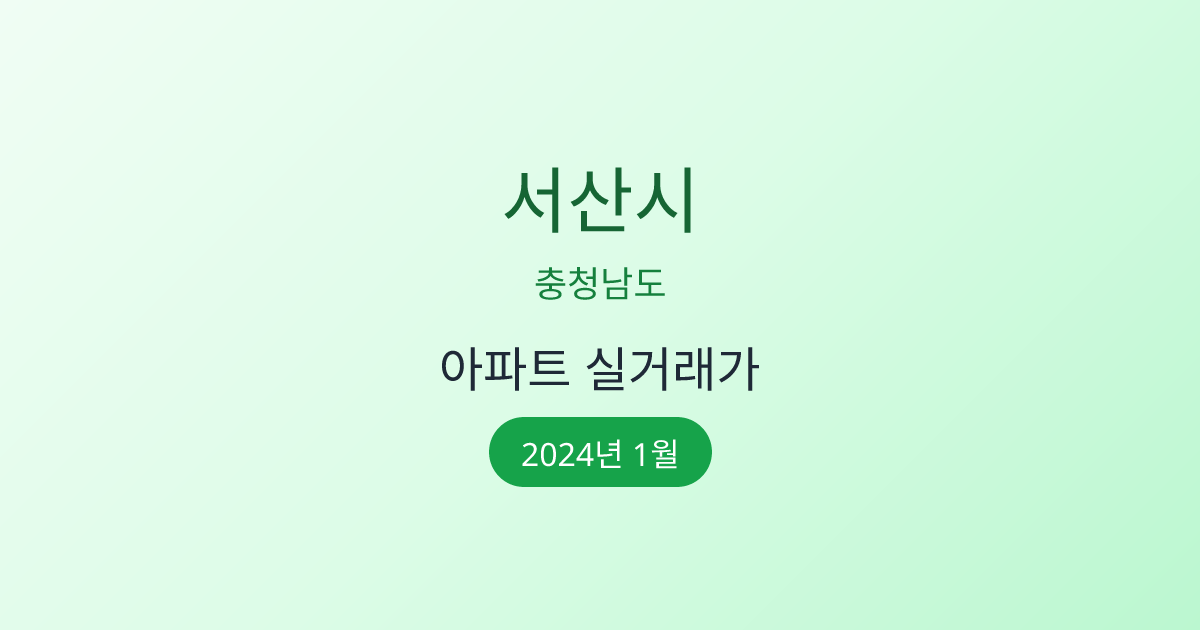 2024년 1월 충청남도 서산시 아파트 매매 실거래가 정보입니다. 국토교통부 공식 데이터를 기반으로 합니다.