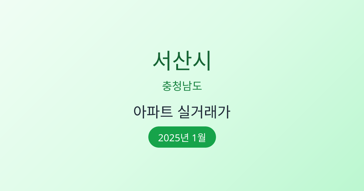 2025년 1월 서산시 부동산 시장 정보 |서산시 아파트 실거래 | 서산시 매매가 조회 |충청남도 서산시 아파트 시세 | 서산시 부동산 정보