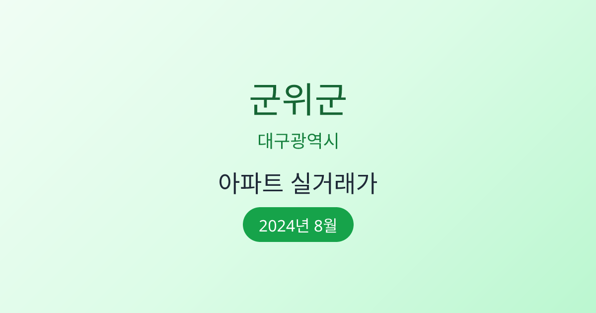 2024년 8월 대구광역시 군위군 아파트 매매 실거래가 정보입니다. 국토교통부 공식 데이터를 기반으로 합니다.