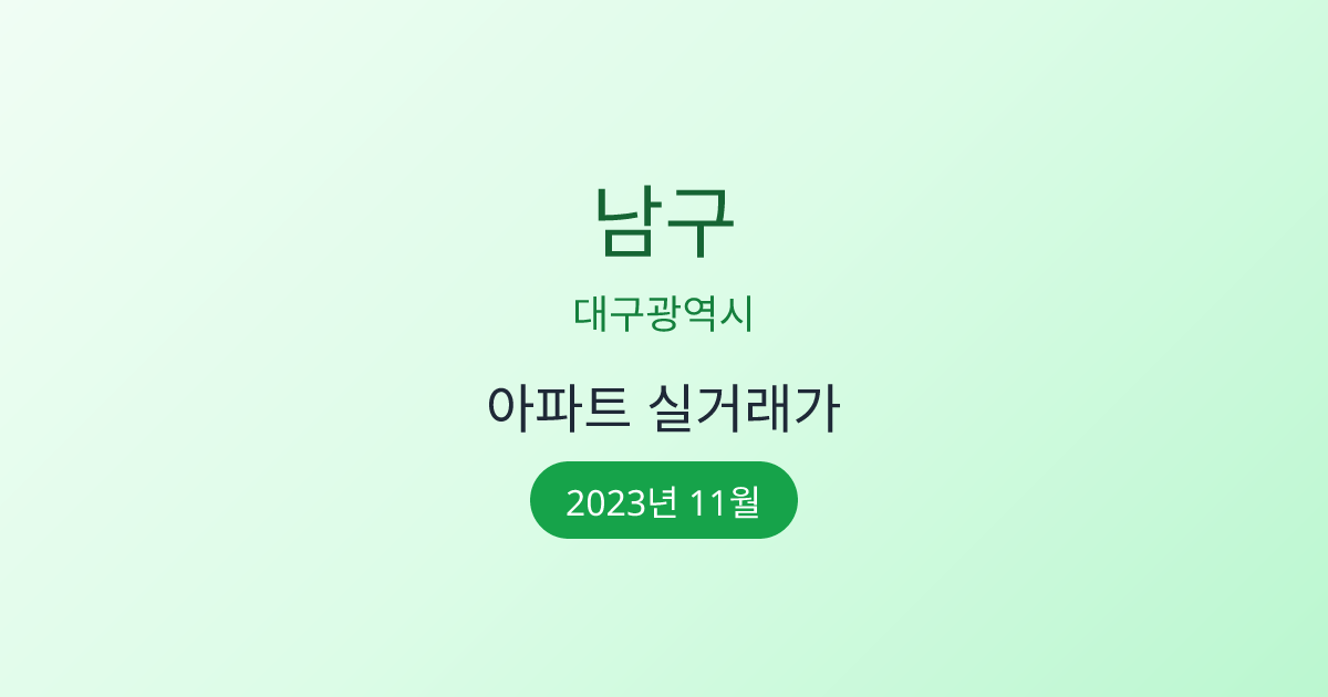 2023년 11월 남구 부동산 시장 정보 |남구 아파트 실거래 | 남구 매매가 조회 |대구광역시 남구 아파트 시세 | 남구 부동산 정보