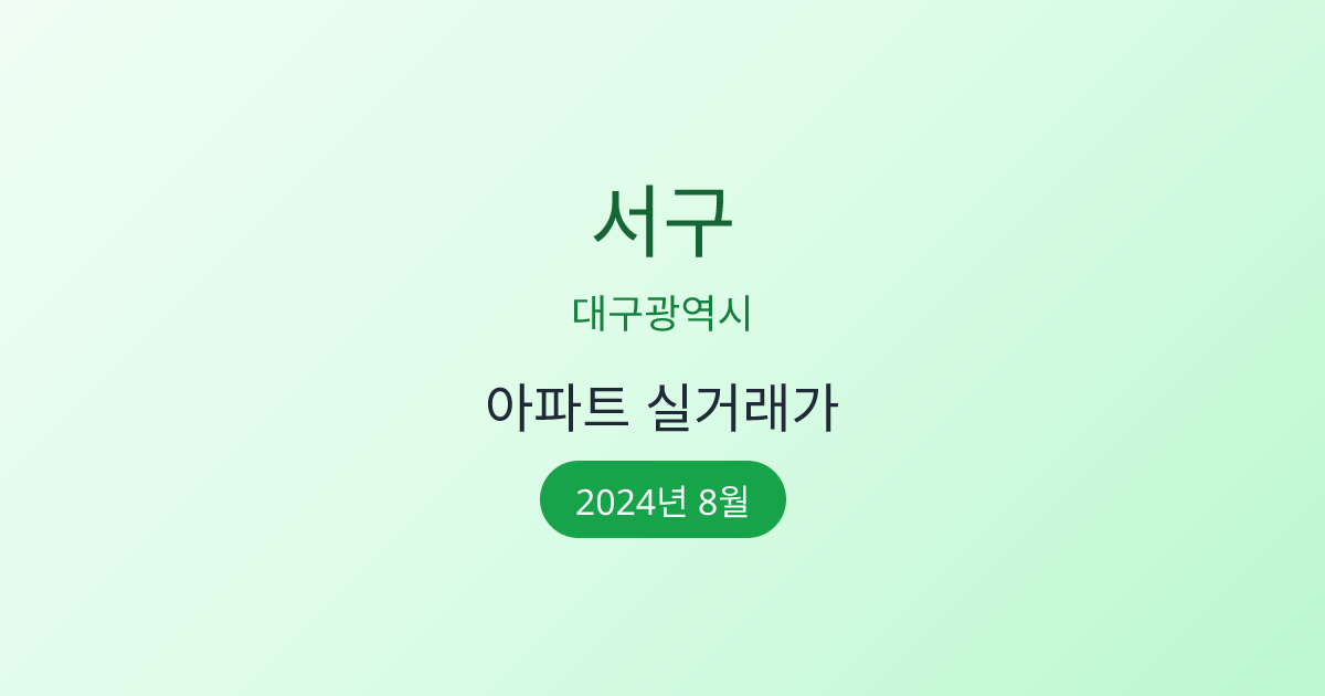 2024년 8월 대구광역시 서구 아파트 매매 실거래가 정보입니다. 국토교통부 공식 데이터를 기반으로 합니다.