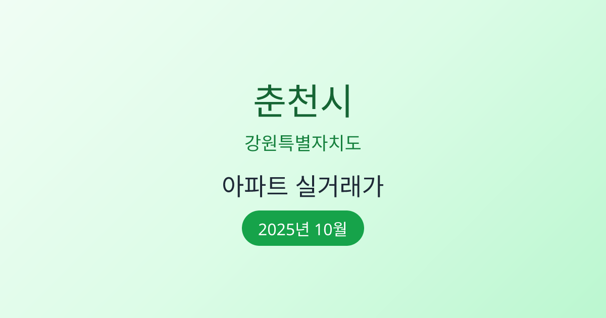 2025년 10월 춘천시 부동산 시장 정보 |춘천시 아파트 실거래 | 춘천시 매매가 조회 |강원특별자치도 춘천시 아파트 시세 | 춘천시 부동산 정보