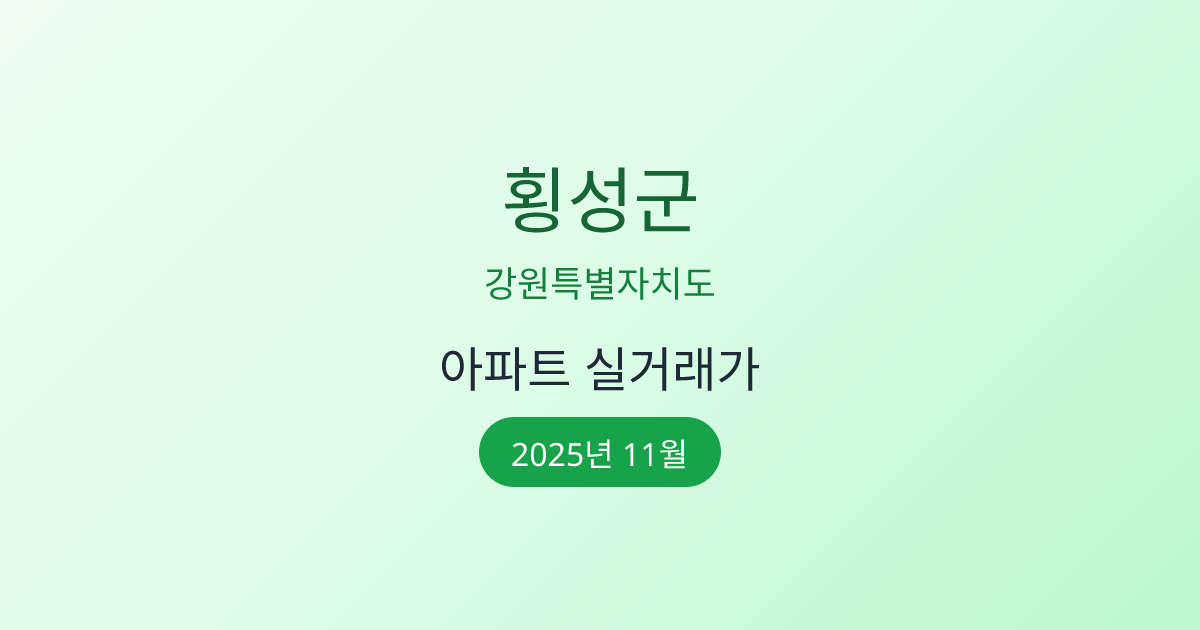 2025년 11월 강원특별자치도 횡성군 아파트 매매 실거래가 정보입니다. 국토교통부 공식 데이터를 기반으로 합니다.