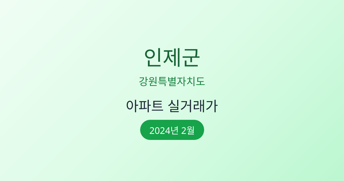 2024년 2월 인제군 부동산 시장 정보 |인제군 아파트 실거래 | 인제군 매매가 조회 |강원특별자치도 인제군 아파트 시세 | 인제군 부동산 정보