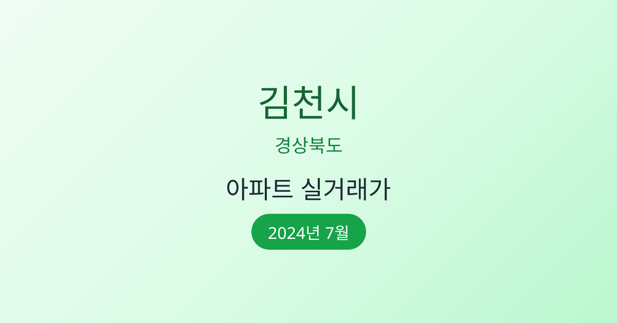 2024년 7월 경상북도 김천시 아파트 매매 실거래가 정보입니다. 국토교통부 공식 데이터를 기반으로 합니다.