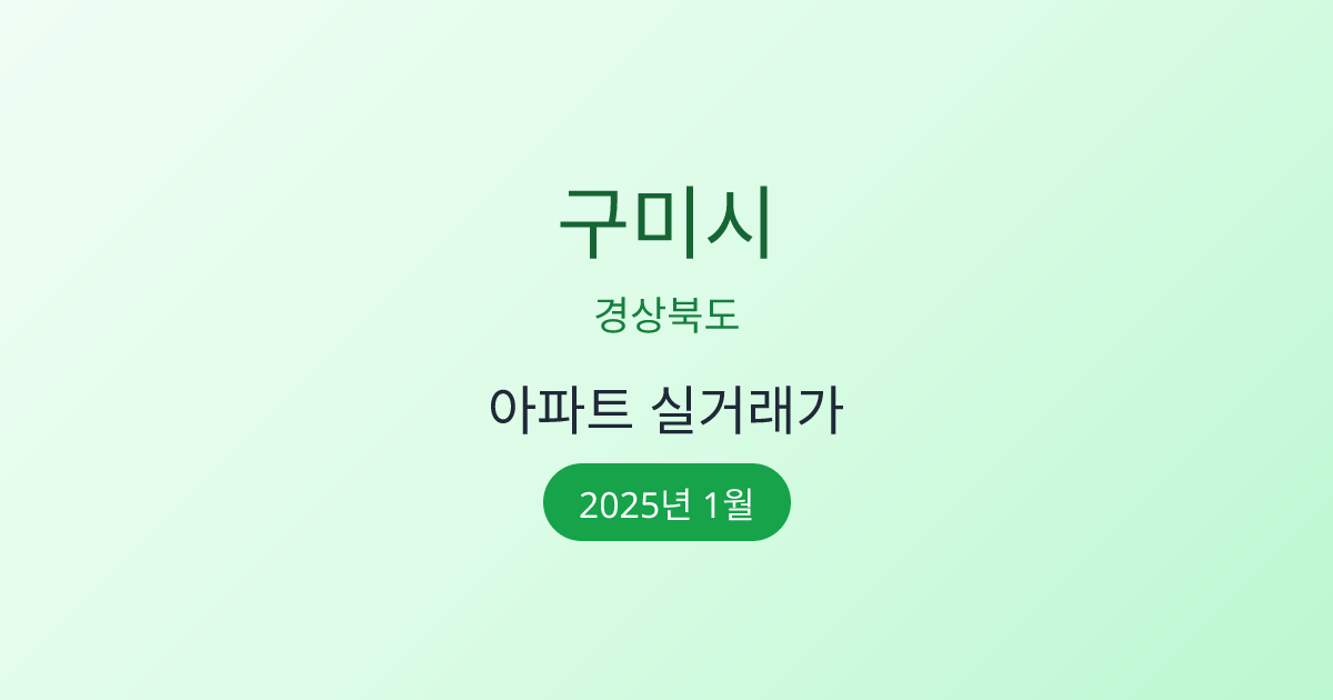 2025년 1월 경상북도 구미시 아파트 매매 실거래가 정보입니다. 국토교통부 공식 데이터를 기반으로 합니다.