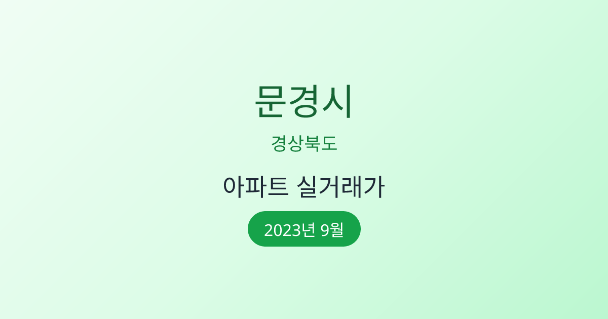 2023년 9월 경상북도 문경시 아파트 매매 실거래가 정보입니다. 국토교통부 공식 데이터를 기반으로 합니다.