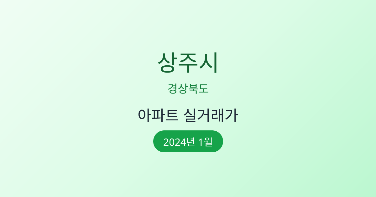 2024년 1월 상주시 부동산 시장 정보 |상주시 아파트 실거래 | 상주시 매매가 조회 |경상북도 상주시 아파트 시세 | 상주시 부동산 정보