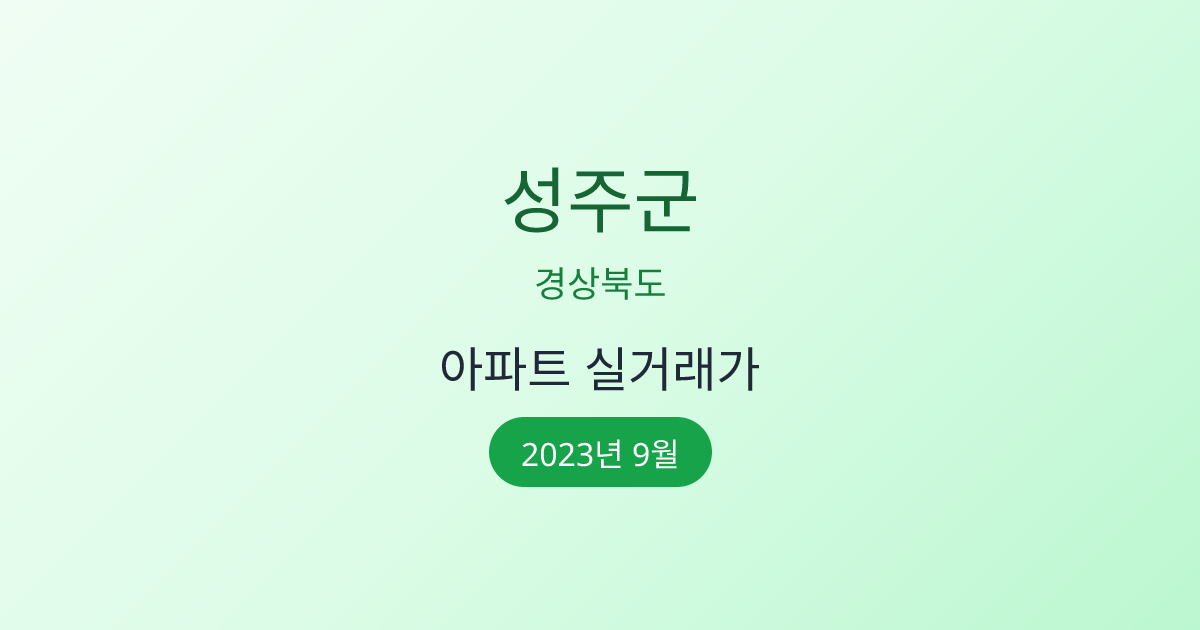2023년 9월 성주군 부동산 시장 정보 |성주군 아파트 실거래 | 성주군 매매가 조회 |경상북도 성주군 아파트 시세 | 성주군 부동산 정보