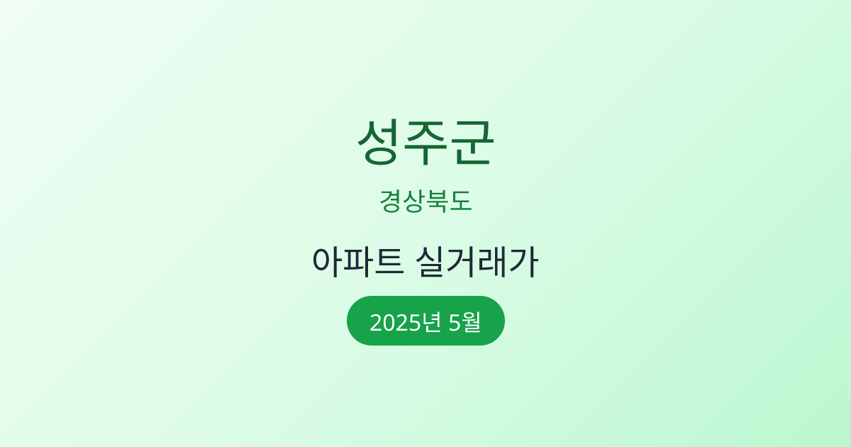 2025년 5월 경상북도 성주군 아파트 매매 실거래가 정보입니다. 국토교통부 공식 데이터를 기반으로 합니다.