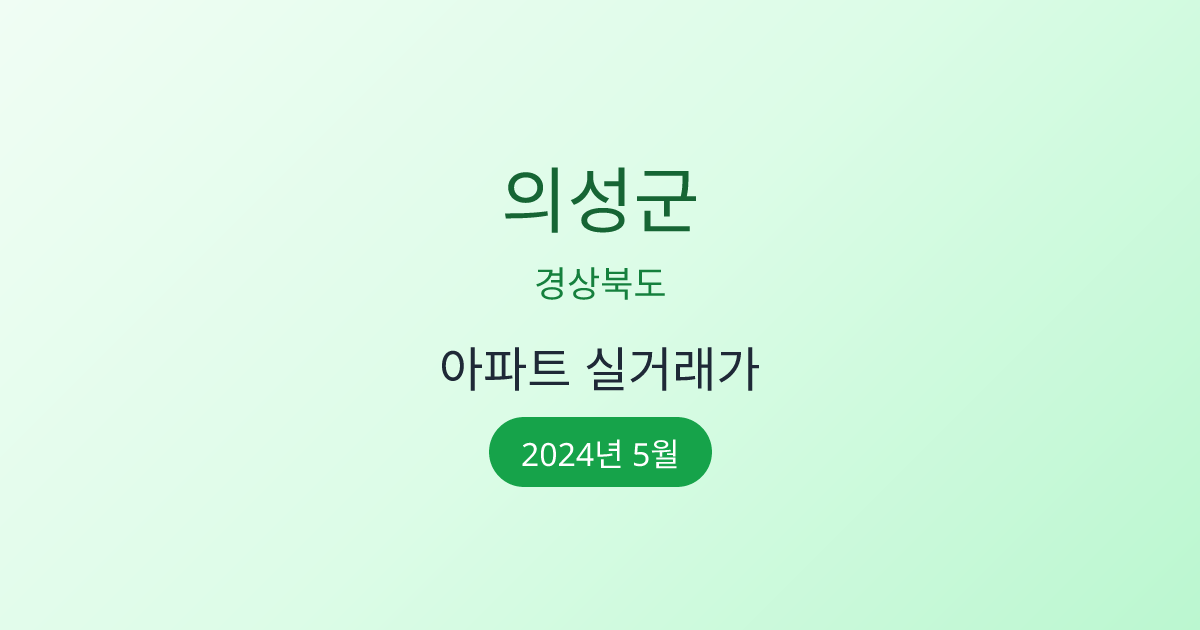 2024년 5월 경상북도 의성군 아파트 매매 실거래가 정보입니다. 국토교통부 공식 데이터를 기반으로 합니다.