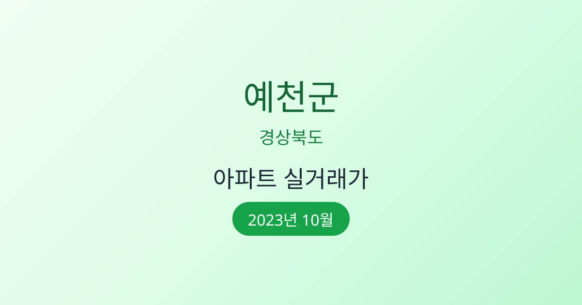2023년 10월 경상북도 예천군 아파트 매매 실거래가 정보입니다. 국토교통부 공식 데이터를 기반으로 합니다.