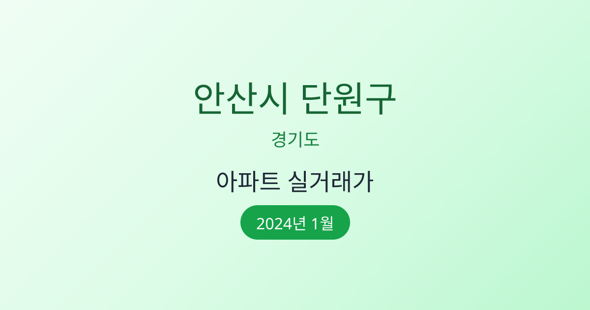 2024년 1월 경기도 안산시 단원구 아파트 매매 실거래가 정보입니다. 국토교통부 공식 데이터를 기반으로 합니다.
