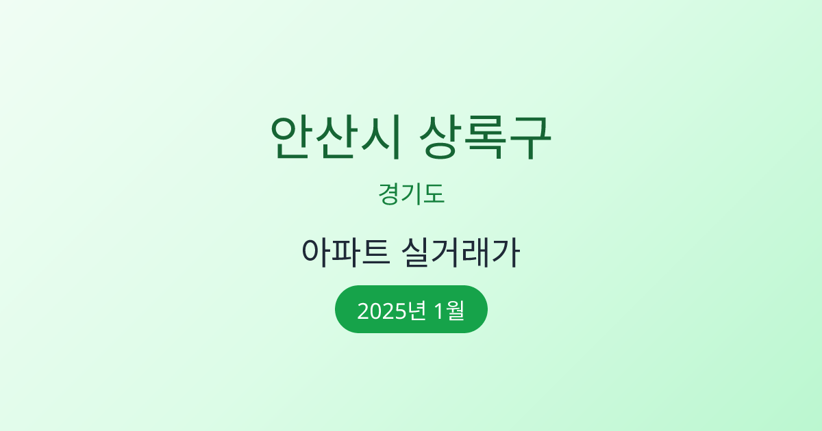 2025년 1월 안산시 상록구 부동산 시장 정보 |안산시 상록구 아파트 실거래 | 안산시 상록구 매매가 조회 |경기도 안산시 상록구 아파트 시세 | 안산시 상록구 부동산 정보