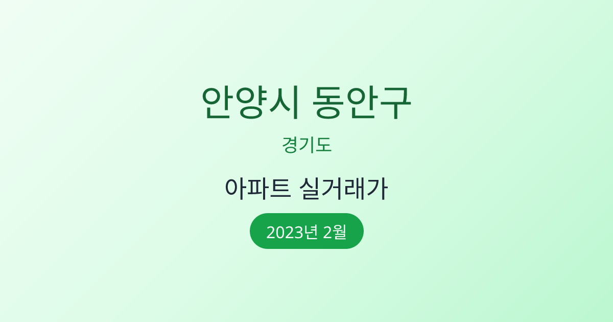 2023년 2월 경기도 안양시 동안구 아파트 매매 실거래가 정보입니다. 국토교통부 공식 데이터를 기반으로 합니다.