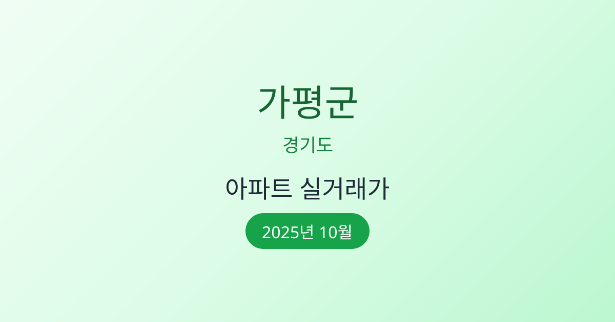 2025년 10월 경기도 가평군 아파트 매매 실거래가 정보입니다. 국토교통부 공식 데이터를 기반으로 합니다.