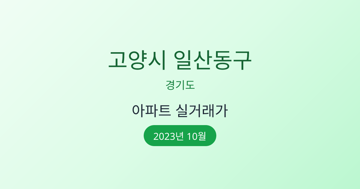 2023년 10월 고양시 일산동구 부동산 시장 정보 |고양시 일산동구 아파트 실거래 | 고양시 일산동구 매매가 조회 |경기도 고양시 일산동구 아파트 시세 | 고양시 일산동구 부동산 정보