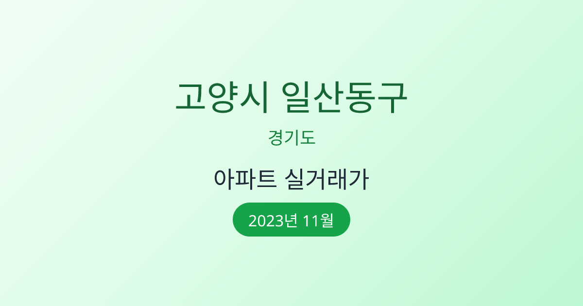 2023년 11월 경기도 고양시 일산동구 아파트 매매 실거래가 정보입니다. 국토교통부 공식 데이터를 기반으로 합니다.