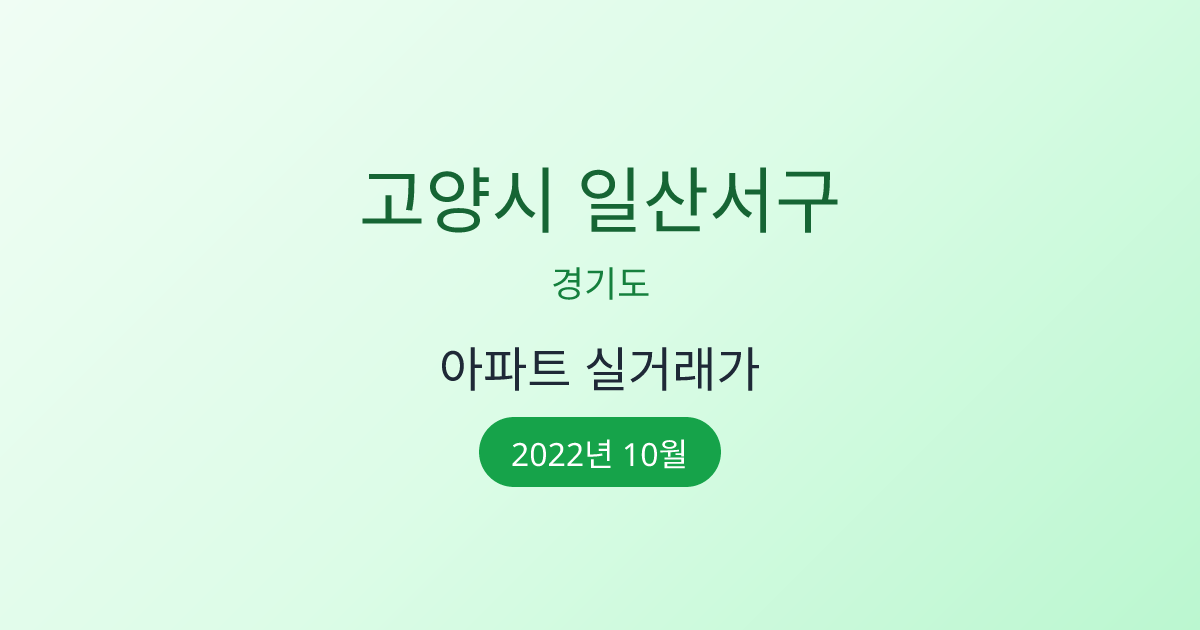 2022년 10월 경기도 고양시 일산서구 아파트 매매 실거래가 정보입니다. 국토교통부 공식 데이터를 기반으로 합니다.