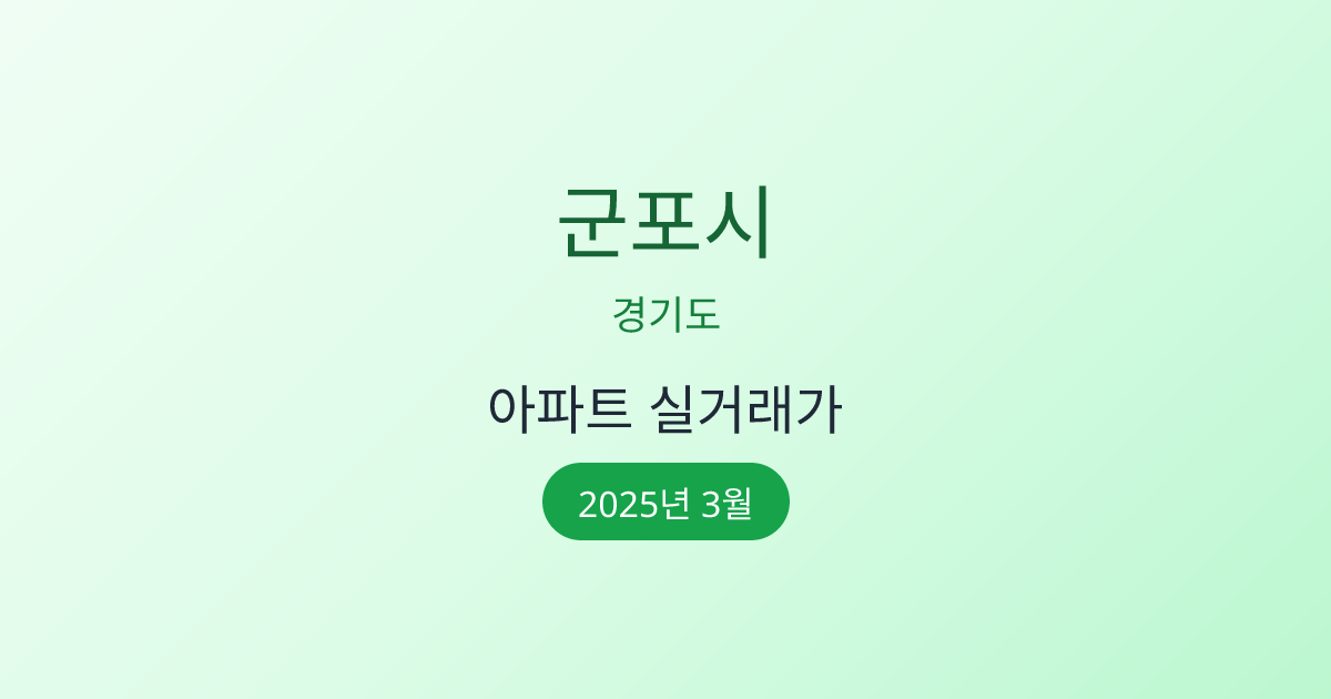 2025년 3월 군포시 부동산 시장 정보 |군포시 아파트 실거래 | 군포시 매매가 조회 |경기도 군포시 아파트 시세 | 군포시 부동산 정보