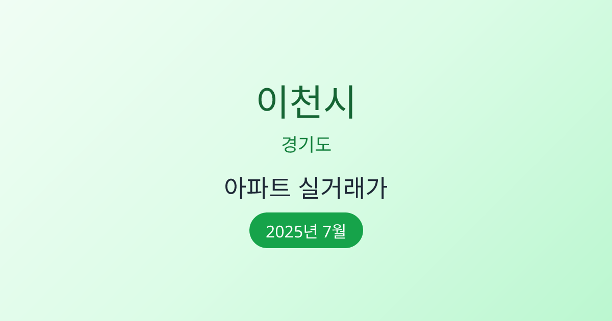 2025년 7월 이천시 부동산 시장 정보 |이천시 아파트 실거래 | 이천시 매매가 조회 |경기도 이천시 아파트 시세 | 이천시 부동산 정보