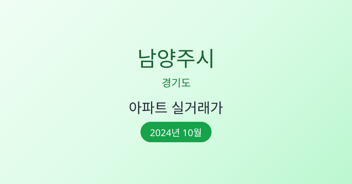 2024년 10월 경기도 남양주시 아파트 매매 실거래가 정보입니다. 국토교통부 공식 데이터를 기반으로 합니다.