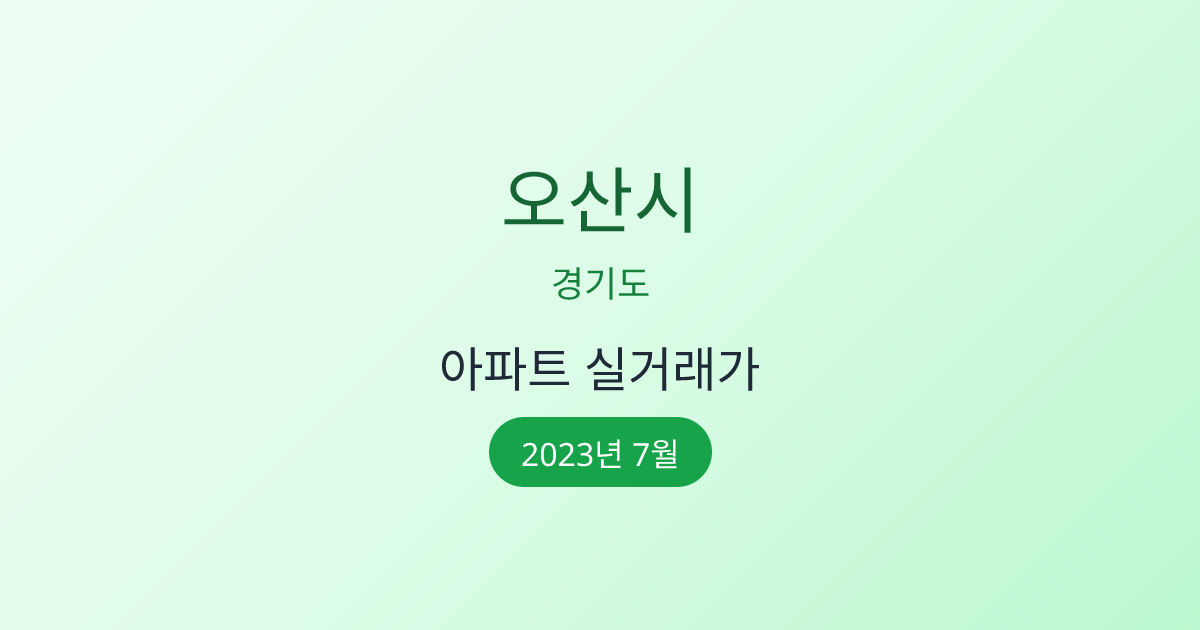 2023년 7월 경기도 오산시 아파트 매매 실거래가 정보입니다. 국토교통부 공식 데이터를 기반으로 합니다.