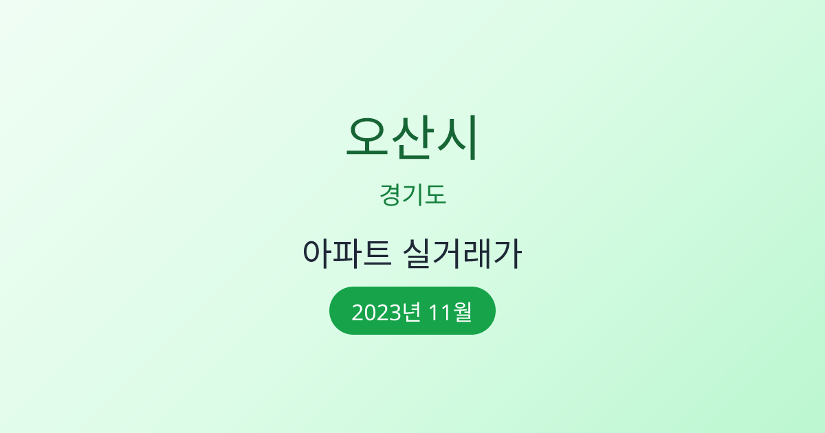 2023년 11월 경기도 오산시 아파트 매매 실거래가 정보입니다. 국토교통부 공식 데이터를 기반으로 합니다.