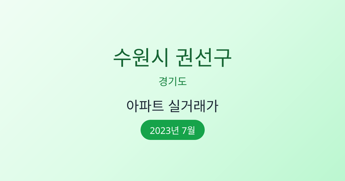 2023년 7월 경기도 수원시 권선구 아파트 매매 실거래가 정보입니다. 국토교통부 공식 데이터를 기반으로 합니다.