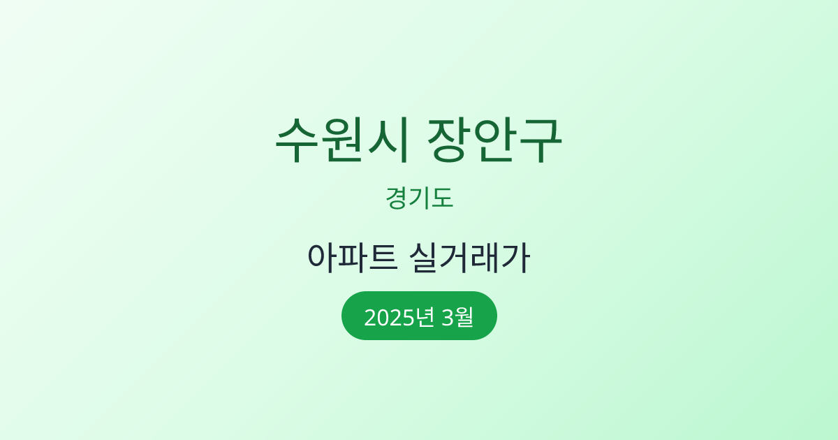 2025년 3월 경기도 수원시 장안구 아파트 매매 실거래가 정보입니다. 국토교통부 공식 데이터를 기반으로 합니다.
