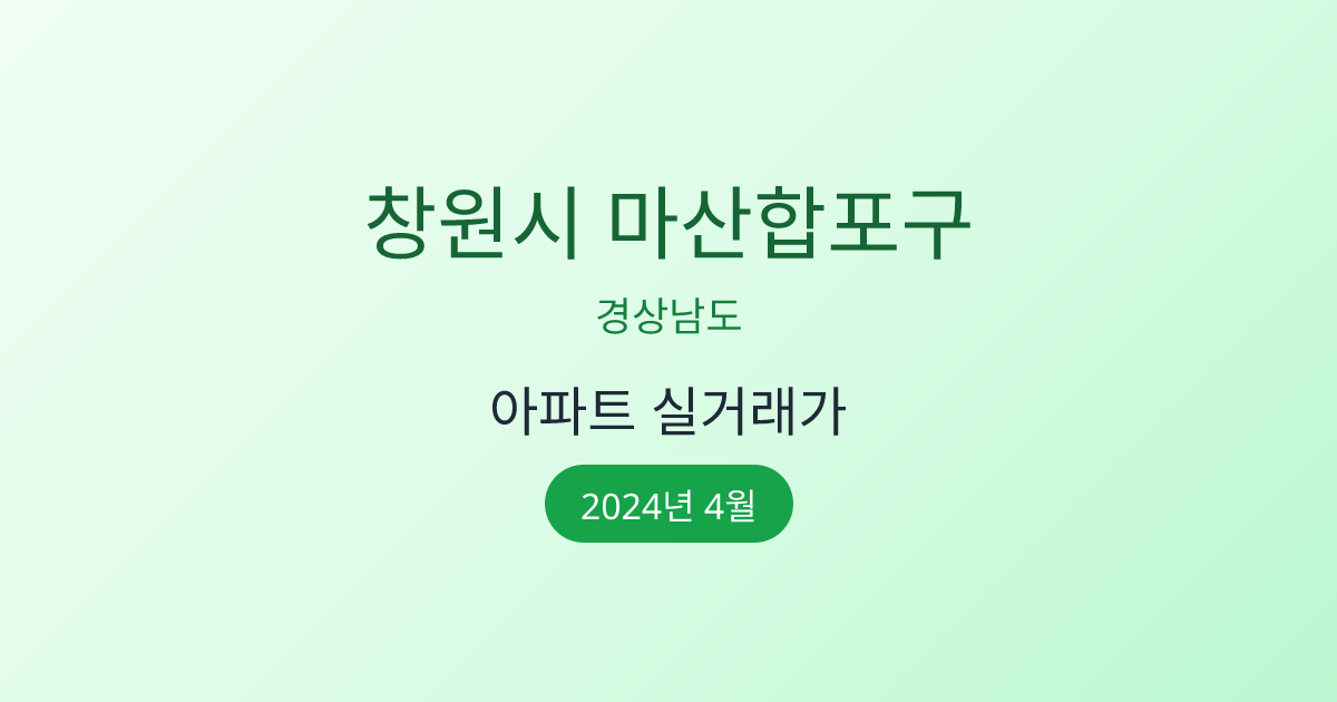 2024년 4월 경상남도 창원시 마산합포구 아파트 매매 실거래가 정보입니다. 국토교통부 공식 데이터를 기반으로 합니다.
