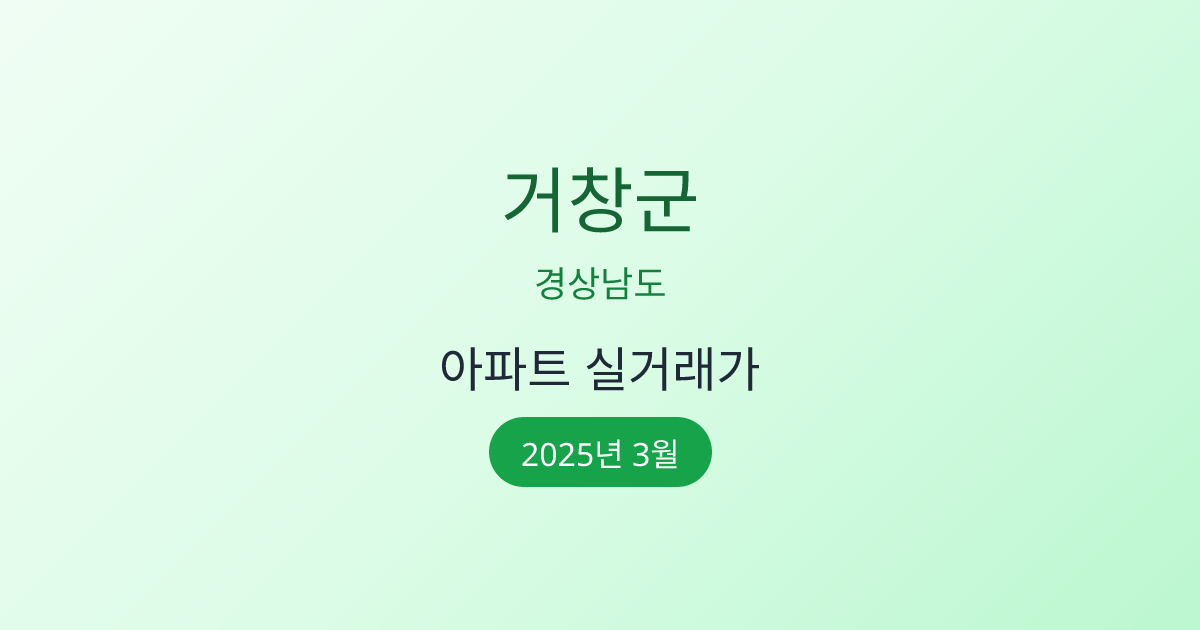 2025년 3월 경상남도 거창군 아파트 매매 실거래가 정보입니다. 국토교통부 공식 데이터를 기반으로 합니다.