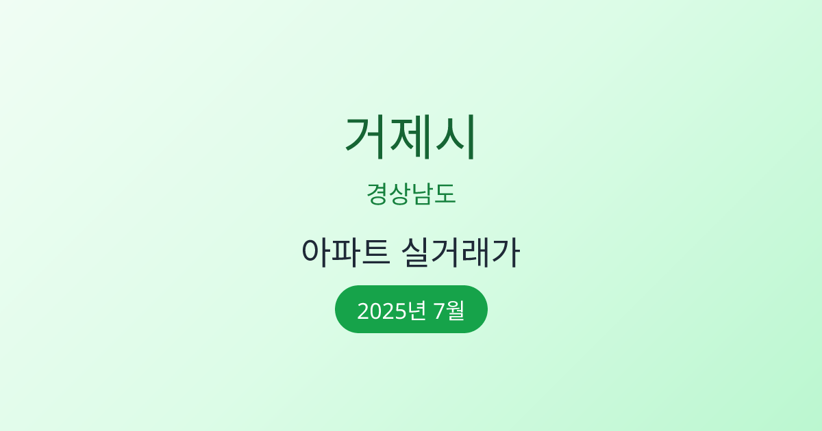 2025년 7월 경상남도 거제시 아파트 매매 실거래가 정보입니다. 국토교통부 공식 데이터를 기반으로 합니다.